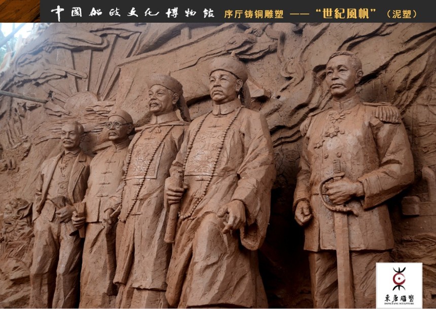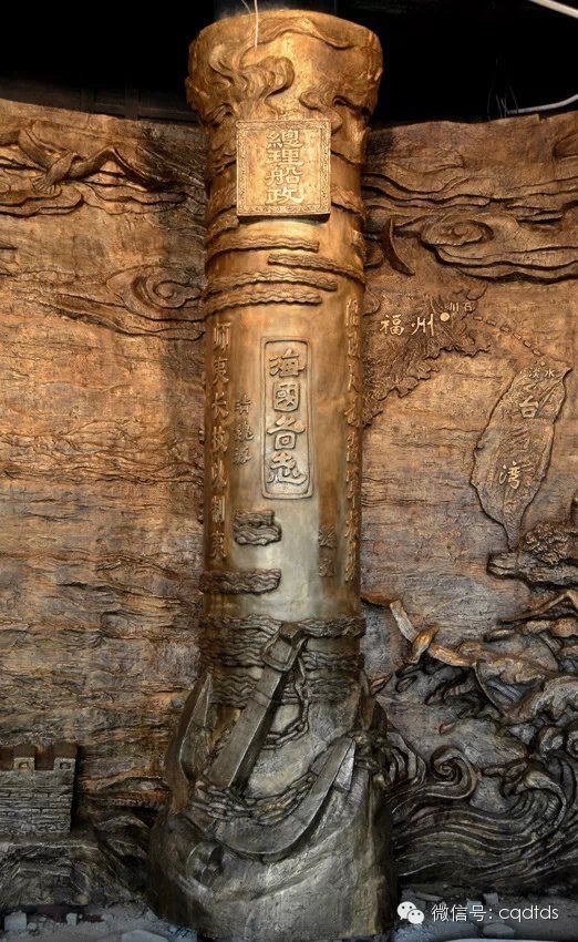 中國船政文化博物館时间:2022-05-07 【原创】 浮雕展現(xiàn)了福建船政的輝煌歷史。畫面中心是一艘乘風破浪迎面駛來的大船,船頭巍然屹立著船政學堂創(chuàng)始人左宗棠與沈葆楨,集中展現(xiàn)了“左沈共襄”的主題;船政創(chuàng)立者以他們的高瞻遠矚、深謀遠慮,踐行“師夷長技以制夷”的實踐,共同開啟中國船政新篇章,引領(lǐng)中國走向大海,走向未來!船政創(chuàng)辦宗旨為“鑄艦、鑄才”,分列二人左右的是船政培養(yǎng)出的杰出人才代表,分別是“鐵路之父”詹天佑、啟蒙思想家嚴復(fù)、海軍名將薩鎮(zhèn)冰。中心部分浮雕象征著:1.中國船政從這里起航;2.福建船政及船政學堂為中國近代培養(yǎng)并輸送了大批劃時代的的民族精英;他們推動了中國近代化的進程! 浮雕巧妙結(jié)合了諸多船政要素,分別有: 輪機車間——觸摸福建船政百年滄桑,感懷船政曾經(jīng)的輝煌! “羅星晨輝”——朝陽沖出海面,綻放耀眼的光芒,輝映馬江之畔的羅星塔!“紅日初升、其道大光”,仿佛揭開了民族復(fù)興的序幕! “中國醒獅”——由船政衙門石獅演化而來,象征著中華民族的覺醒。拿破侖曾經(jīng)說過,中國是一頭沉睡的雄獅,一旦醒來,整個世界都會為之顫抖! 海鷗——是自由穿行于風浪的精靈,是無懼狂風巨浪的嬌子。海鷗在浮雕中的運用很好的活躍了畫面,將觀者的思緒帶向浩瀚大海!同時它也是船政胸懷海洋、走向海洋并征服海洋的象征,是船政文化靈魂的體現(xiàn)和象征。 “海上電信絲路”——川石海底電纜是船政學堂電報專業(yè)學生參與鋪設(shè)的,是中國人參與鋪設(shè)的第一條海底電纜。由閩江口的川島到臺灣淡水,1887年鋪設(shè)完畢,全長117海里。是聯(lián)系海峽兩岸的紐帶。 “億載金城”——億載金城曾是臺海安全的重要防線。由時任欽差大臣的沈葆楨所建,以抗擊日本的侵略,加強海防。城門內(nèi)外上方“億載金城”、“萬流砥柱”的大字都是沈葆楨親筆題寫。 海軍搖籃——畫面靠右的海面上乘風起航的艦船是船政學堂建造的艦船代表。馬尾堪稱中國近代海軍的搖籃,船政培養(yǎng)了中國第一代海軍人才,打造了中國第一支艦隊,無數(shù)個第一,奠定了馬尾成為中國近代海軍搖籃的歷史地位。 浮雕右側(cè)浮雕柱則運用了鐵錨、海浪等元素,結(jié)合與船政、海防相關(guān)的文字,展示出海防之于國家的重要性,同時展現(xiàn)出船政文化的深厚內(nèi)涵。