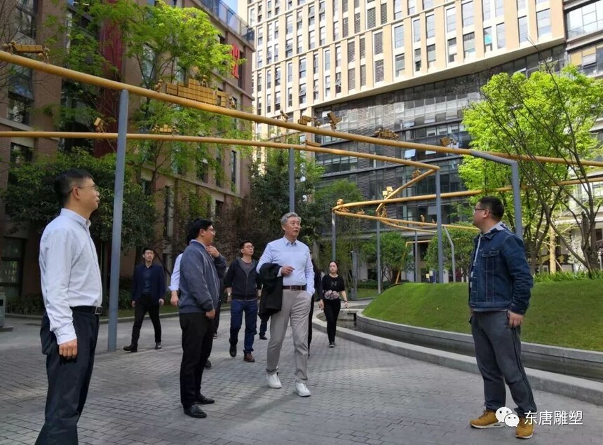 鳳凰衛視一行考察調研東唐雕塑3月29日下午,鳳凰衛視執行董事、常務副總裁崔強一行在重慶日報報業集團總裁向澤映的陪同下,來到重慶東唐雕塑調研。 崔總裁一行認真聽取了重慶東唐雕塑的基本概況、發展規劃以及公司近年來落成的經典藝術項目案例的介紹。崔總裁對由我公司為重慶創意公園量身打造的創意公共雕塑系列作品贊不絕口,并饒有興致的與藝術家交流對雕塑作品與公共空間的理解和看法,對創意雕塑在點亮城市空間、激發城市創新活力、塑造城市性格的重要作用深表贊同。隨后,崔總裁一行還實地考察了由我公司創作實施的重慶創意公園系列“網紅”公共雕塑及裝置藝術作品。崔總裁認為雕塑作為展顯城市文化的重要載體,應當引領城市文化創新,在城市文化建設中發揮更大的作用。