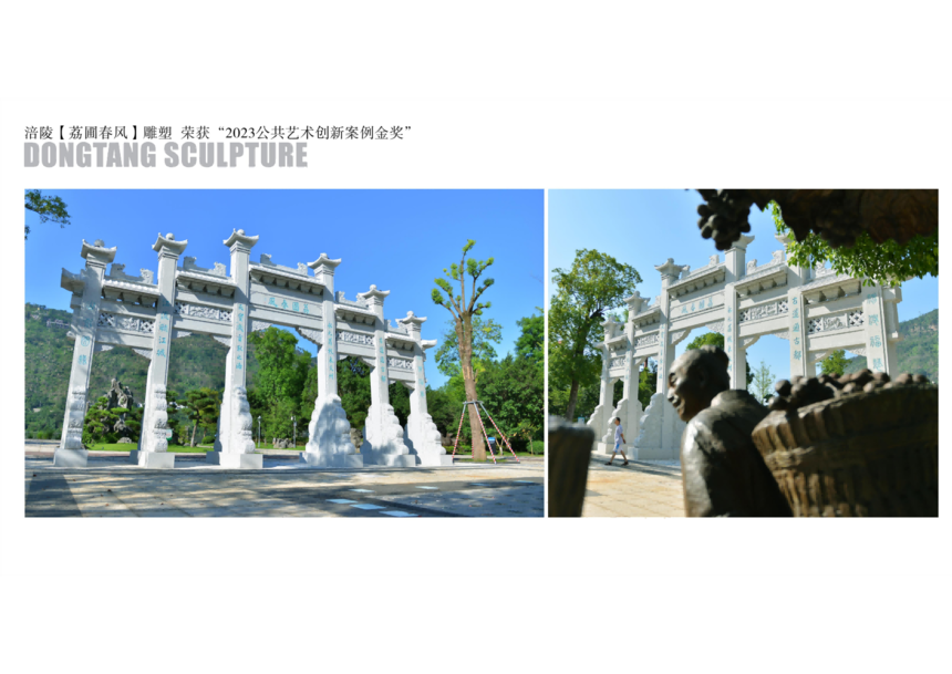 重慶市涪陵區(qū)“荔圃春風(fēng)”、“烏江行舟記”項目以荔圃春風(fēng)牌坊為地標(biāo)、輔以種荔枝、採荔枝、運荔枝、品荔枝雕塑群, 表現(xiàn)荔枝古道起點和種植、采摘、運送、分享荔枝等全過程,構(gòu)成一個“荔圃春風(fēng)”文化園,借以再現(xiàn)唐代涪州的歷史盛景;